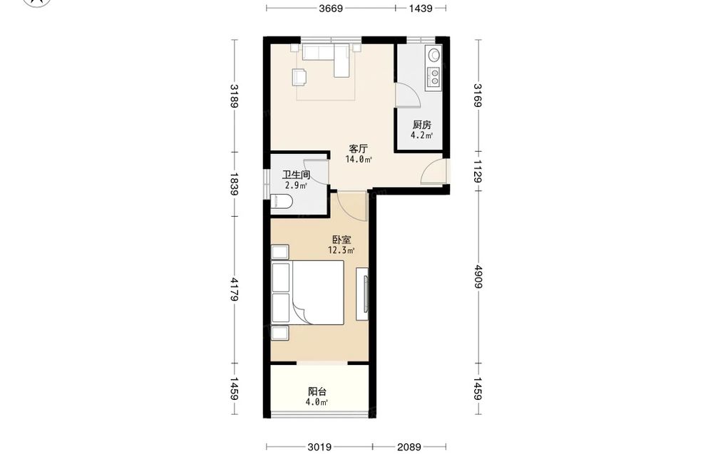 听涛苑 精装一室 南北通透 有阳台